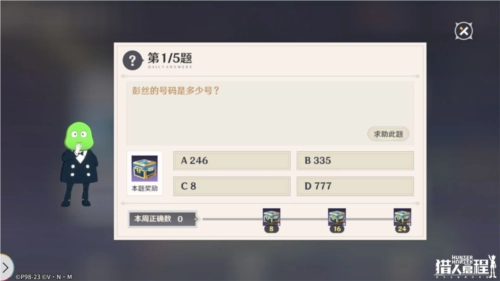 每天拥有5次答题机会,当累计答对8次、16次、24次时,都能解锁宝箱奖励。开启宝箱有机会获取金币、稀有援助卡碎片、精英援助卡碎片、史诗援助卡碎片、SR角色碎片、SSR角色碎片等各类资源。