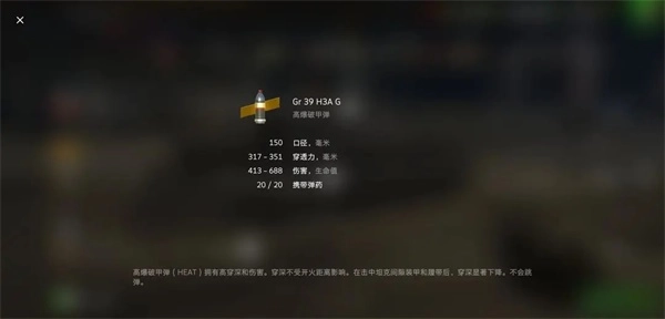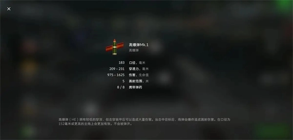 这种特殊的高爆弹(碎甲弹)只有少数战车配备,它不仅具备出色的穿深能力,命中目标后还能造成巨额伤害。如果你是玩183的玩家,且银币储备充足,建议携带5发AP弹,其余空位装填HESH弹——毕竟这种弹种还拥有高爆溅射效果(不过萌新不建议碰183这条线,否则你的数据可能会很难看)。