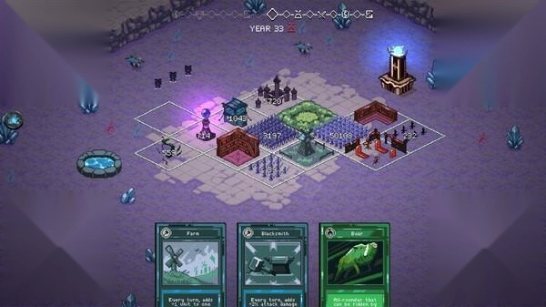 1、传统SLG游戏的宏大版图被精简为9块关键地块,每一块的建设与调整都需审慎考量,左右着玩家王国的发展走向。 2、借助纸牌来建造建筑、招募士兵、研发技术或是发起战争,玩家要合理调配每一轮抽到的纸牌,以应对各类不同状况。