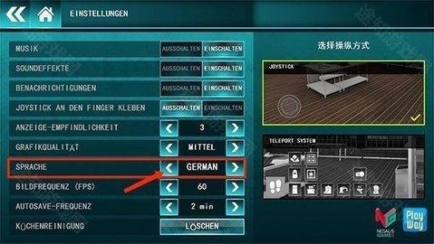 2、在设置界面里点击“SPRACHE”旁边的小三角,就能进入语言设置界面。