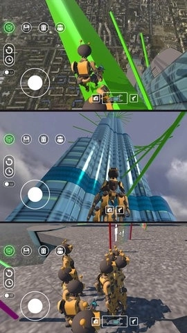 飞到绝顶的弹簧、滑轮等上百种互动道具可供玩家使用,借此能测试不同材质间的碰撞效果。玩家还可以拖放各类模块来搭建专属于自己的场景,并且能够调节陷阱的灵敏度、爆炸的威力等参数,进而设计出像沙漠刀片阵或者太空零重力这样的各种关卡。此外,玩家能够把角色用绳索捆绑到火箭、弹射装置等上面,在角色进行抛物线运动的过程中,观赏其四肢乱舞的滑稽模样。