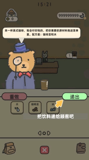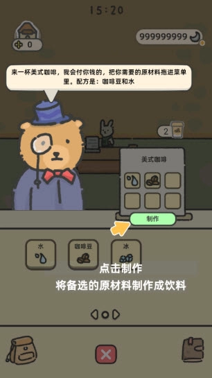 多收集些食材,就能研发新饮品啦!按照顾客的需求来搭配各种配料,为他们送上心仪的饮品。比如说,把牛奶和咖啡豆混在一起就能制成拿铁咖啡,要是再加入巧克力,就能做出全新的咖啡饮品了!