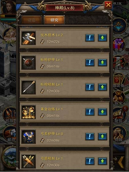 升级科技能够提升各类资源的产量百分比,科技的种类越多样、等级越高,带来的加成效果就越明显。打开军团界面后,选择研究选项,就能挑选需要的科技开展研发工作。