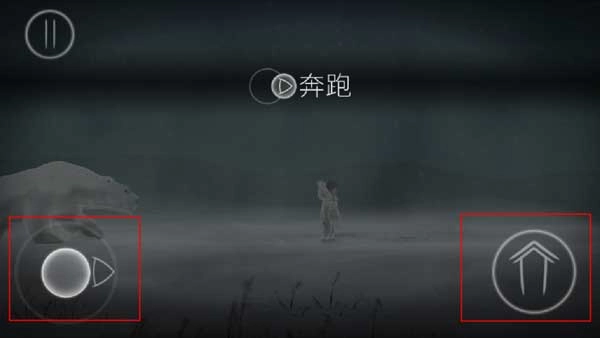 5、游戏启动后,小女孩会在一个风雪肆虐的夜晚苏醒,紧接着就被北极熊追赶。这时候玩家需要点击屏幕上的奔跑按钮来完成逃脱。