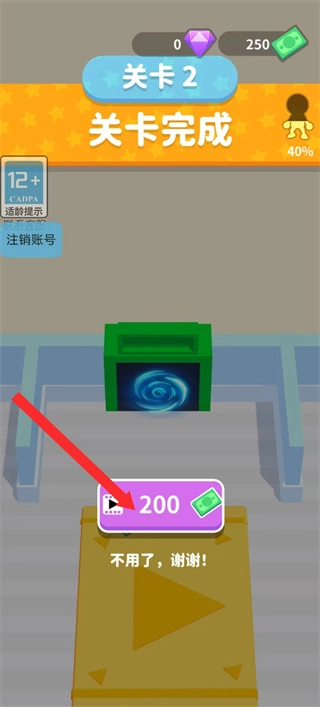 3、跟着红色箭头的指引操作,关卡结束后点击下方的钞票进行采集,以此推进关卡的通关流程。
