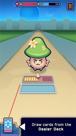 1、进入对战界面后,点击左下角的牌堆,从DealerDeck中抽取卡牌,这些卡牌会填充至上方槽位,为后续的数值对战环节做好准备。