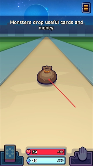 4、击败对战中的怪物后,会获取其掉落如图中钱袋类资源,这些道具可用于卡牌强化或资源补充。