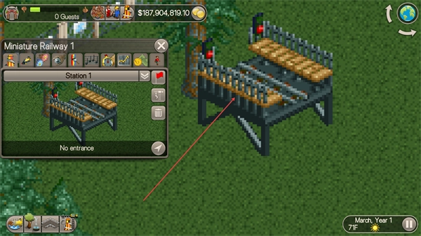 1、在NewTransportRides界面选择MiniatureRailway,点击BUILD花费$1300+建造该设施。