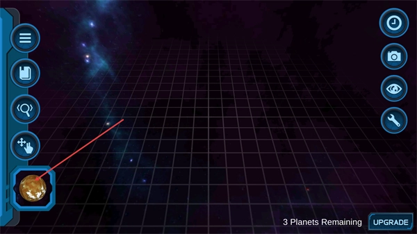 2、在网格界面点击左侧的天体,将其放置到网格区域内,为后续的天体碰撞合成相关操作做好准备。
