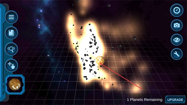 4、操控天体进行碰撞,碰撞后会出现碎裂效果且剩余天体数量减少,完成该操作可推进游戏进度解锁更多内容。