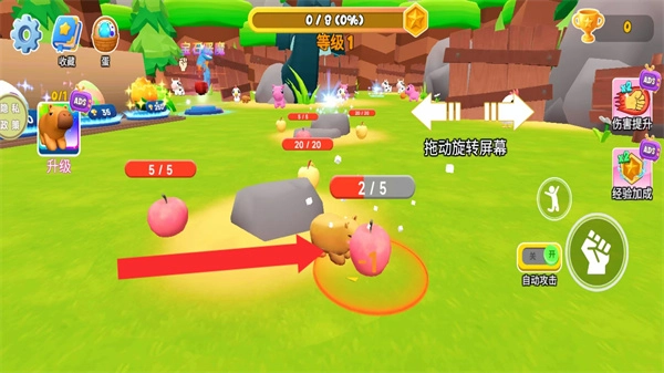 孵化不同外观的宠物蛋很有新鲜感,和卡皮巴拉一起探索不同场景的过程轻松有趣,自动攻击模式降低了操作难度,击败敌人获取奖杯和经验的设定,让成长节奏清晰,解锁卡皮巴拉新形态时成就感十足。