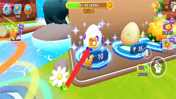 3、等级提升后,点击场景中的超级蛋,打开蛋的获取界面,准备解锁新角色。
