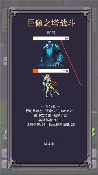 3、持续战斗至第19轮,将Boss剩余血量压至20,接近胜利条件。