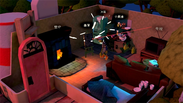 1、观察房间内的物品画架等,操控角色移动到画架位置,准备进行创作。