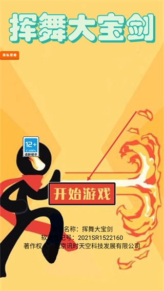 1、这是挥舞大宝剑的启动界面,点击中间的开始游戏按钮,即可进入游戏关卡。
