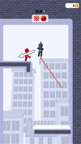 2、进入关卡1,需操控角色挥舞宝剑攻击对手,按指引向敌方角色方向操作,触发攻击动作以推进战斗进程。