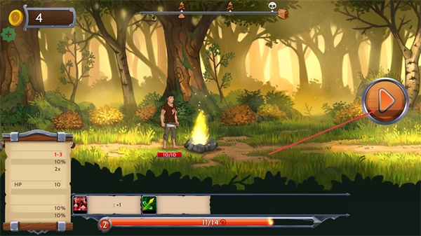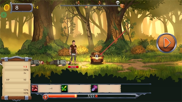 1、在当前界面确认自己生命值处于10/10的满值状态后,点击右侧的播放按钮,即可推动游戏进入接下来的互动或战斗环节。