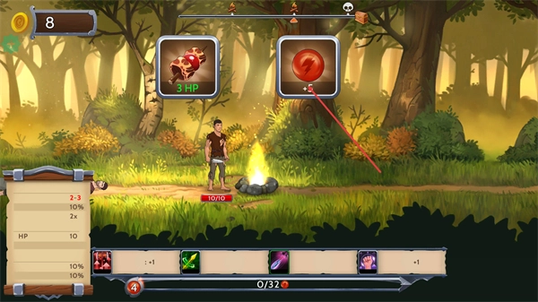 3、遇到火堆时,点燃火堆可以选择带3HP恢复生命值,或是选+5增益属性,助力后续战斗。