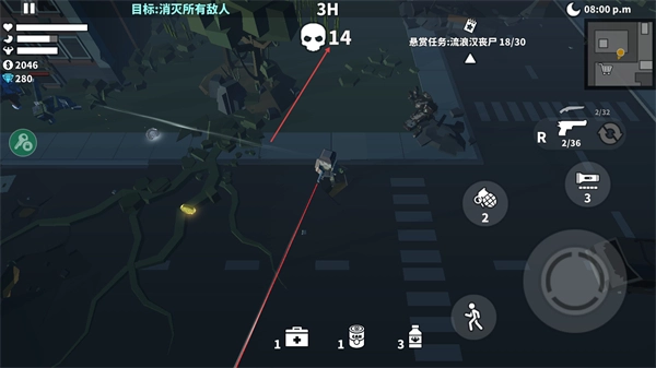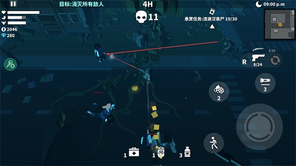 2、上帝视角掌控战场局势,俯视角设计让丧尸分布、地形障碍一目了然,便于精准规划走位路线与射击角度,搭配自主操控的流畅操作,轻松实现极限闪避与高效清场。
