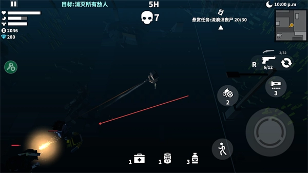 1、操控角色移动并瞄准剩余丧尸,用枪械持续攻击,推进消灭所有敌人目标,同时留意悬赏任务进度。