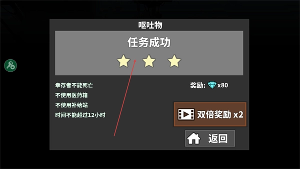 4、消灭最后一批丧尸后,达成任务目标,获得三星评价与钻石奖励,点击返回结束关卡。