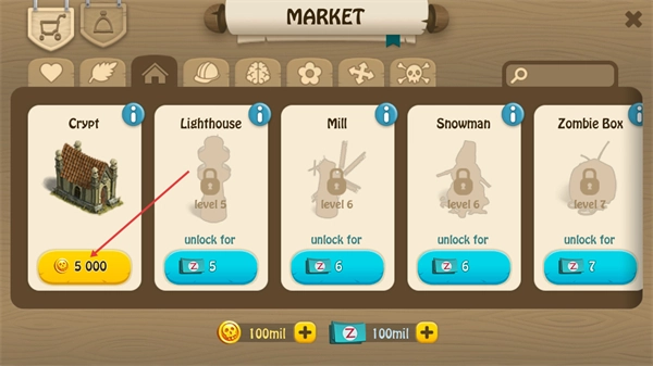 2、在商店的建筑分类下,找到完成任务需要的建筑设施,花费金币进行购买,以推进后续任务进程。
