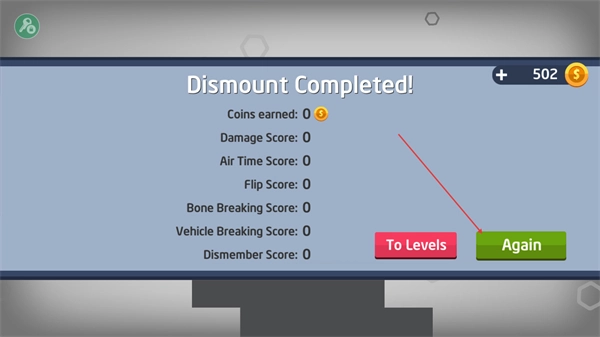 4、滚落结束后,结算得分,可点击Again重新开始挑战,或点击ToLevels进入其他关卡。