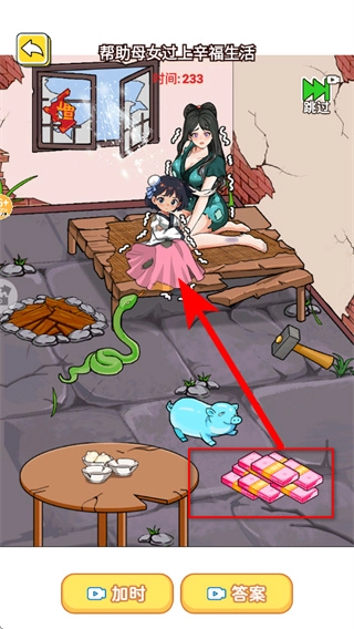 4、完成场景内的交互操作后,推动剧情进展,逐步达成帮助母女过上幸福生活的关卡目标。