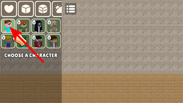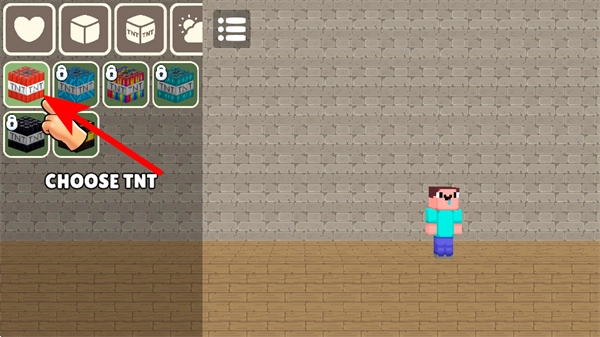 3、切换到道具选择栏,点击TNT道具卡片,将其选中并准备投放至场景。
