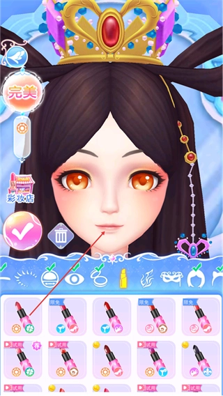 3、全风格彩妆自由创作,涵盖日常裸妆、古风彩妆、童话妆容等多元风格,从眉笔、眼影到口红、腮红,每款彩妆道具都支持细节调整,适配不同仙子气质打造专属造型。