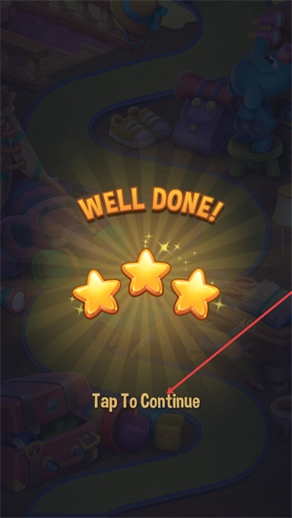 4、完成关卡后会显示WELLDONE并获得星级评价,此时点击界面中的TapToContinue,即可回到关卡选择界面,继续挑战后续关卡。