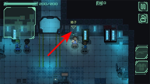 2、进入场景后,操控角色移动到箭头指向的箱子区域,触发交互获取资源或道具。