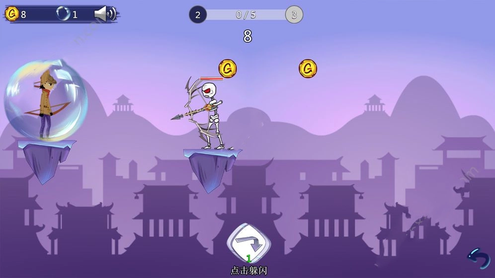 充分利用道具顺利通关,游戏可以通过金币和最高得分换人物和武器;