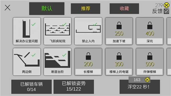 这是一款以火柴人为核心角色的简约风动作闯关游戏,玩家能自由设计游戏场景与地图,操控火柴人驾驶各类载具穿梭其中。无论是从高空俯冲,还是让角色撞击障碍物,游戏的核心乐趣在于通过各种方式让火柴人“出局”。游戏的得分规则颇具特色:火柴人承受的伤害越严重,最终结算的分数与金币奖励就越丰厚,这些资源可用于解锁更多创意关卡与独特地图。