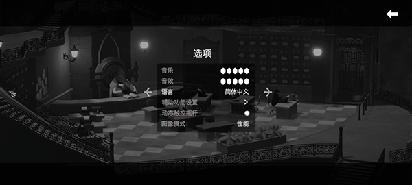 这款游戏运用别具一格的黑白视觉设计,烘托出沉郁紧绷的环境感受,让玩家仿佛置身于幽暗的空间之中。