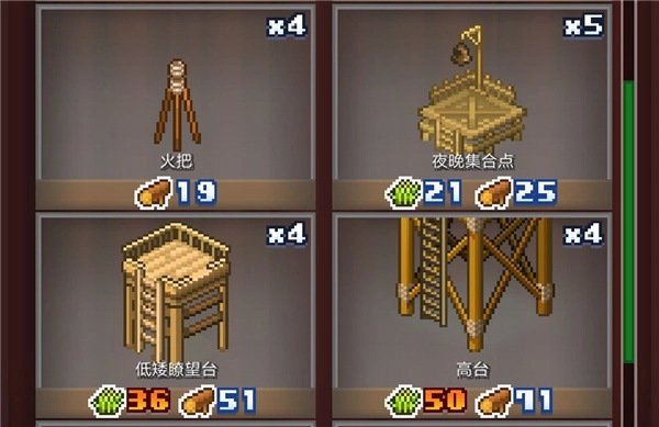 低矮瞭望台:需备有49枚以上大钉子,以及5550枚以上铜币
