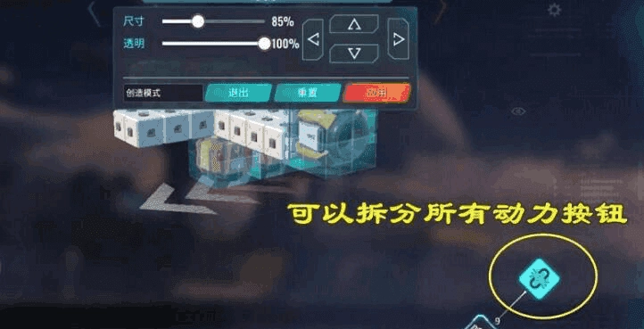 首先进入单人创造模式的奇观场景开始搭建,打造出理想的飞行器并安装推进装置。接着在撤销按钮附近找到功能按钮并点击,进入后选择技能定制选项,此时会看到下方的技能键,拉动该按键后会出现解锁标识,点击解锁后所有推进器相关的操作按钮会自动分散到屏幕各处,之后就可以根据个人操作习惯,将这些按钮依次调整到顺手的位置。