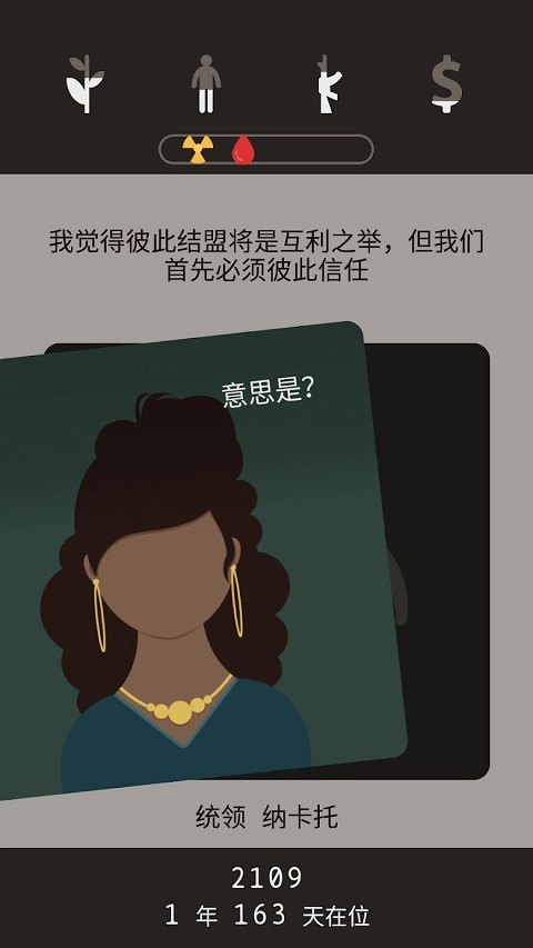 当形形色色的请求与问题涌向你时,你仅需通过左右滑动卡牌便能给出回应,而你的每一个抉择与行动,都将最终左右这个国家的命运走向。