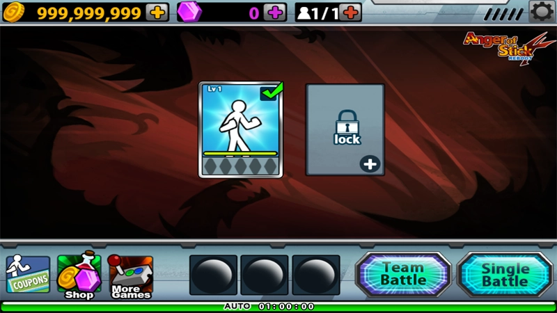 接下来我们可以挑选自己的火柴人角色进行操作,游戏中的所有火柴人角色都需要玩家购买和解锁。