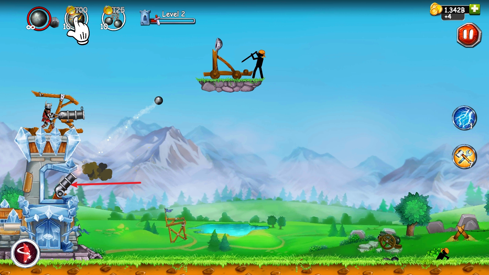 我们能够通过拖动屏幕操控火柴人进行开炮操作,同时屏幕上会显示出相应的辅助线。