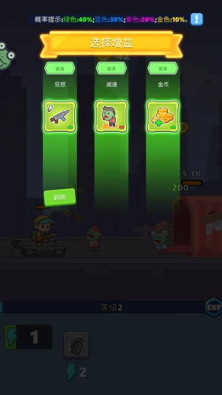 每一轮结束后,你可以挑选强化方向,自主决定增强攻击力、射击速度或者防御能力。