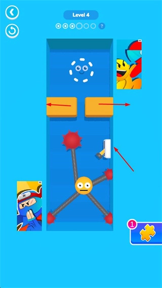 进入Level4关卡,操控肢体推开黄色障碍物,同时避开危险道具,为到达目标区域奠定基础。