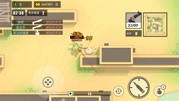 通过屏幕左侧的虚拟摇杆来操控角色的移动方向,右侧的按钮则用于执行射击等各类操作,你的目标是找到并攻击臭蛋。