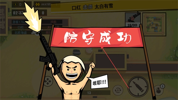 留意自己的血量显示在屏幕下方的绿色进度条,避开臭蛋的反击,不断发起攻击直到把所有臭蛋都消灭掉,这样就能完成防守任务啦。