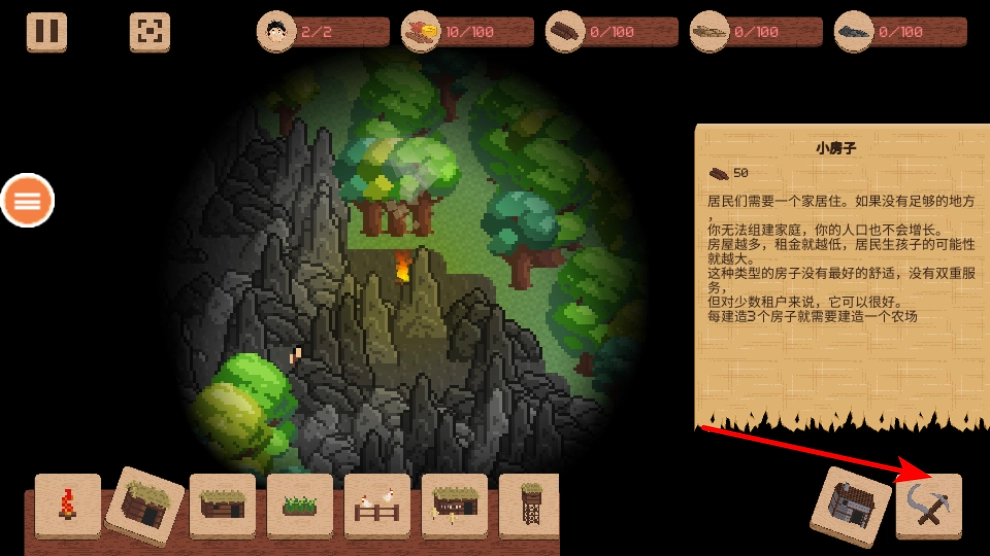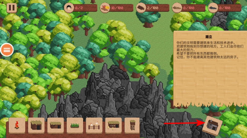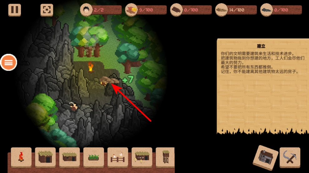 放置建筑设施时,把选定的建筑(比如火堆)拖移到场景里的恰当位置,搭建起基础的生存设施,以此满足居民的生活需求。