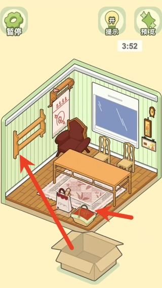 进入游戏后,首先映入眼帘的是一间空荡荡又杂乱的房间,你需要从收纳盒里取出各类家具与装饰品,开启打造温馨家园的旅程,尽情激发自己的装饰创意。