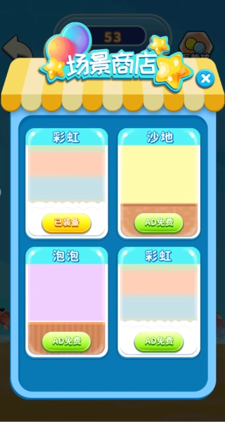打开场景商店,可以选择各种喜欢的背景皮肤。