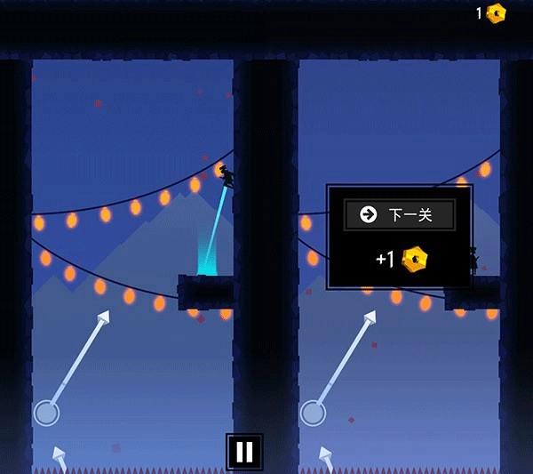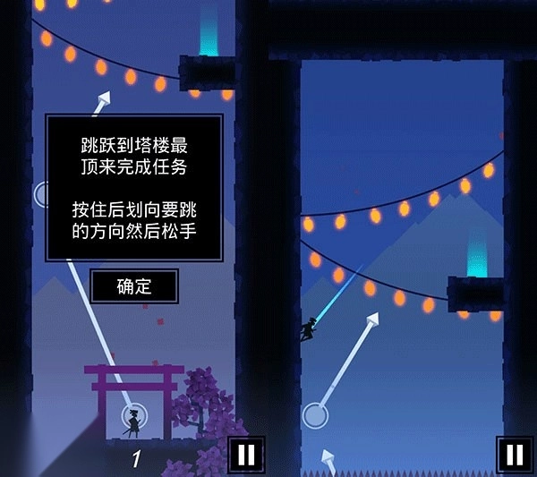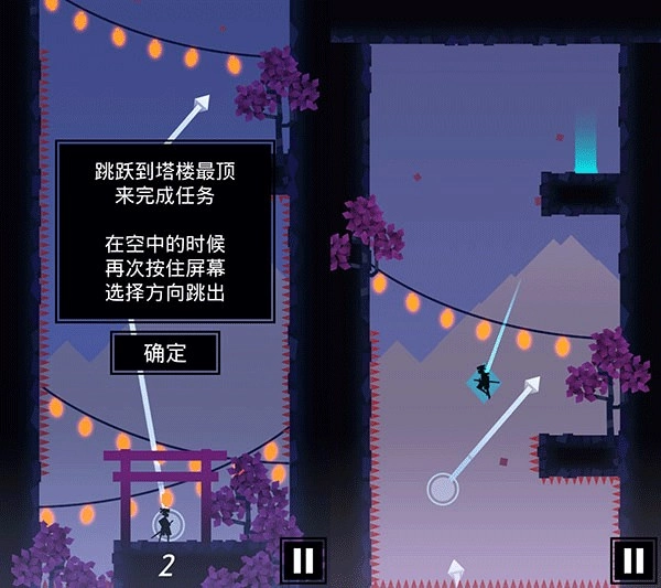 当忍者处于空中状态时,再次按住屏幕,就能朝着你选定的方向再次跳跃,这就相当于多段跳的效果。