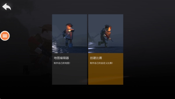 如下图所示,这里有两种游玩模式可供选择。其一为地图编辑器模式,玩家能在此自由地对地图进行编辑;其二是创建比赛模式,玩家可通过该模式来自定义比赛的具体形式。