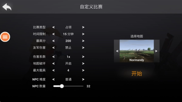 小编选择了自定义比赛模式,在这里你可以自由调整比赛的类型、时长等设置,同时也能对地图的难度进行调整。